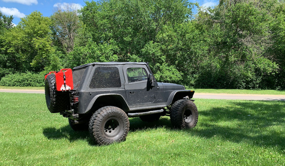 The possibilities are endless when it comes to customizing vehicles. This vehicle features a custom rear bumper and tire carrier, roll bar, seats with 3-point harnesses to hold you in, a soft top, Dana 60 Currie Axles, a lift kit, automatic transmission conversion from a 5-speed, driveshafts, LED lights all around and more. This vehicle has been basically rebuilt from the inside out and is ready to take the path less traveled with additional fuel storage mounted to the back!